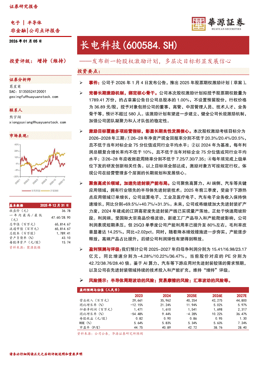 长电科技:华源证券-长电科技-600584-发布新一轮股权激励计划,多层次目标彰显发展信心-260105