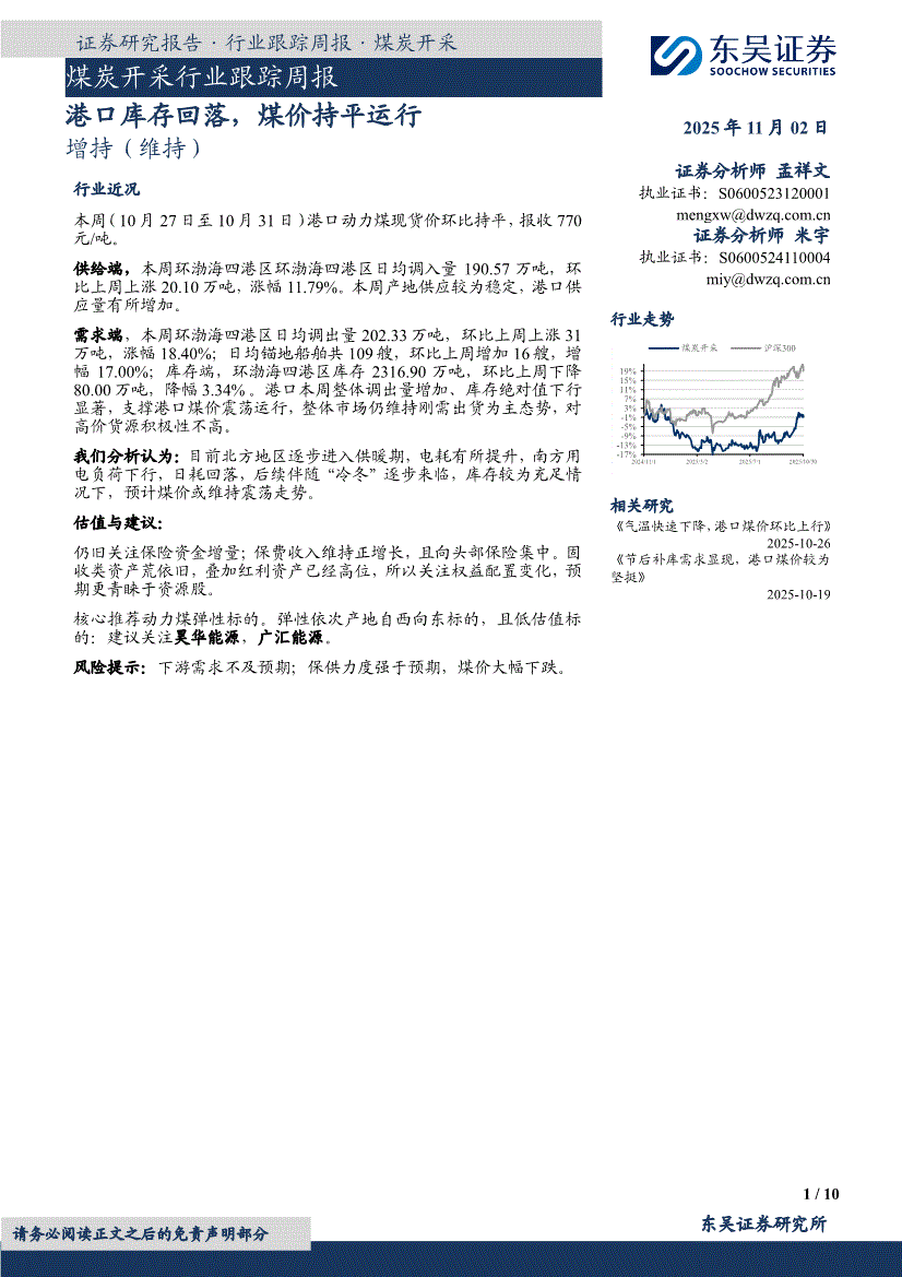 煤炭开采行业:东吴证券-煤炭开采行业跟踪周报:港口库存回落,煤价持平运行-251102
