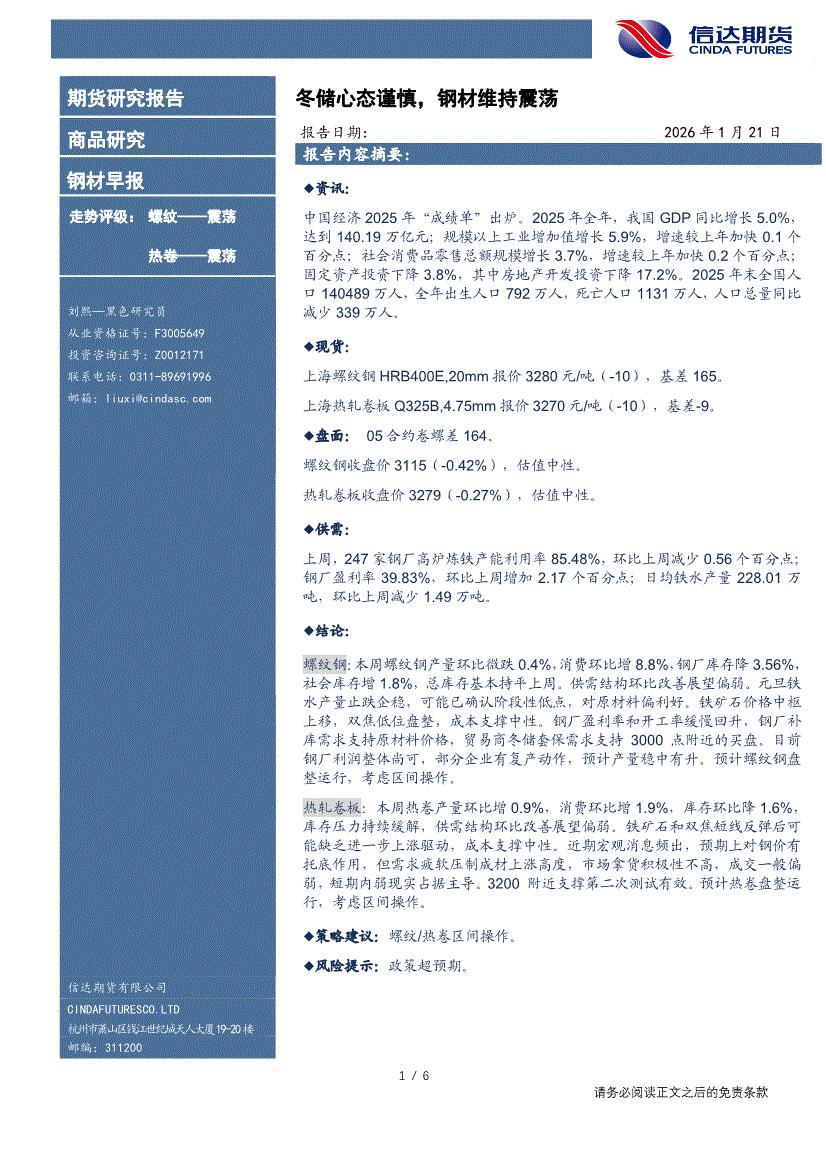 信达期货-钢材早报:冬储心态谨慎,钢材维持震荡-260121