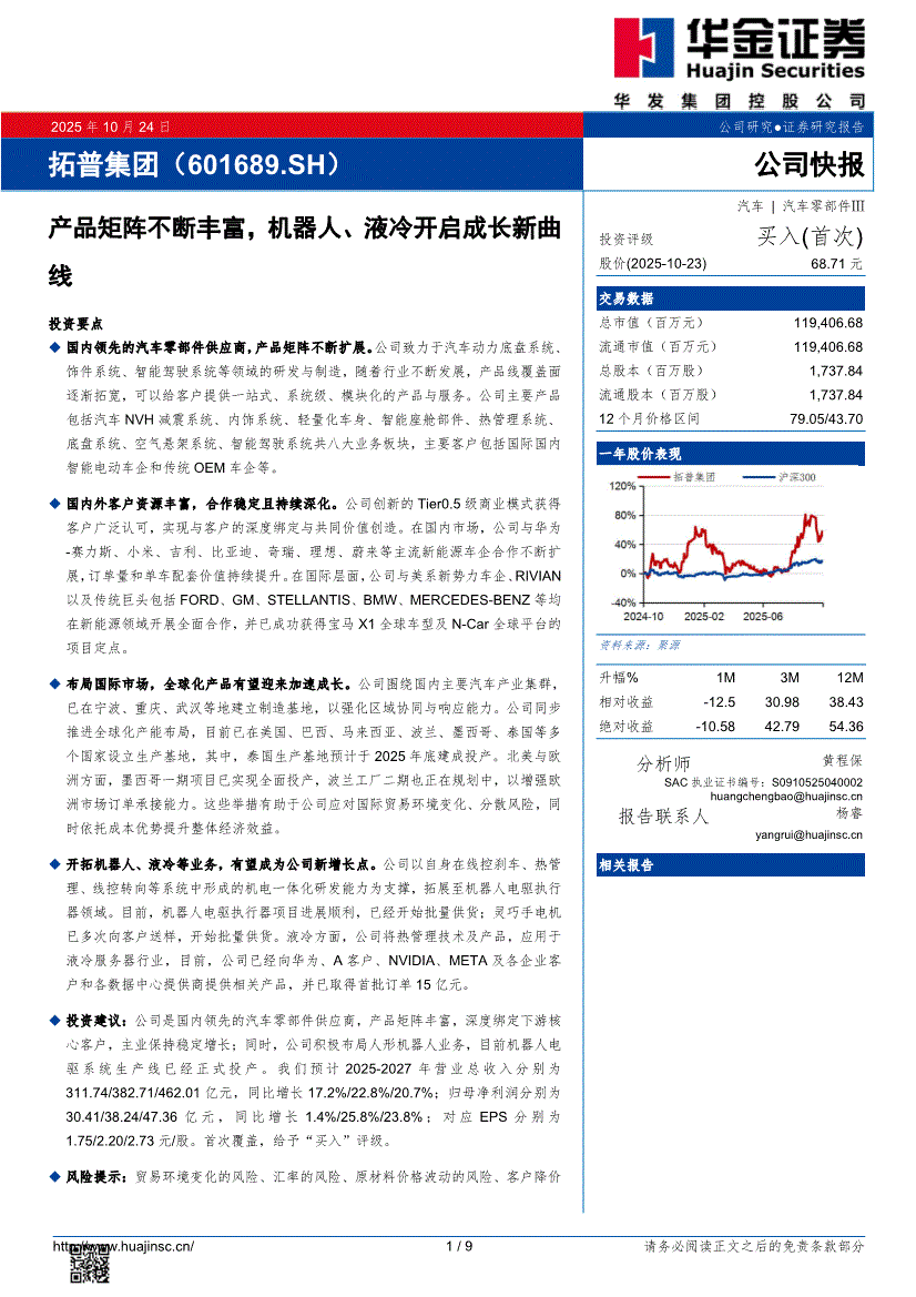 华金证券-拓普集团-601689-产品矩阵不断丰富,机器人、液冷开启成长新曲线-251024