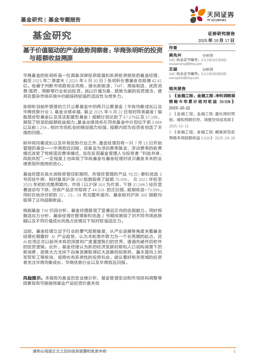 天风证券-基于价值驱动的产业趋势洞察者:华商张明昕的投资与超额收益溯源-251017