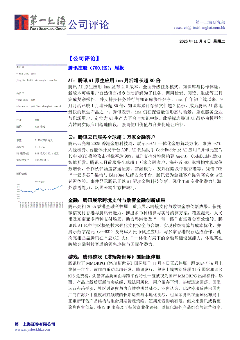 腾讯控股:第一上海-腾讯控股-0700.HK-周报-251104