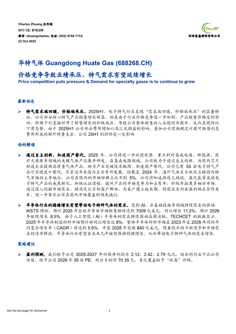 华特气体:环球富盛-华特气体-688268-价格竞争导致业绩承压,特气需求有望延续增长-251022