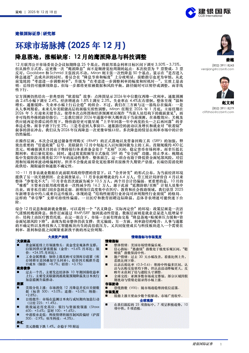 建银国际-环球市场脉搏(2025年12月):降息落地,涨幅缺席,12月的鹰派降息与科技调整-251218