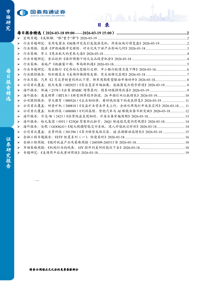 国泰海通证券-每日报告精选-260319