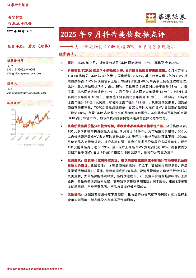美容护理行业:华源证券-2025年9月抖音美妆行业数据点评:9月抖音美妆类目GMV同增20%,国货自营表现亮眼-251014