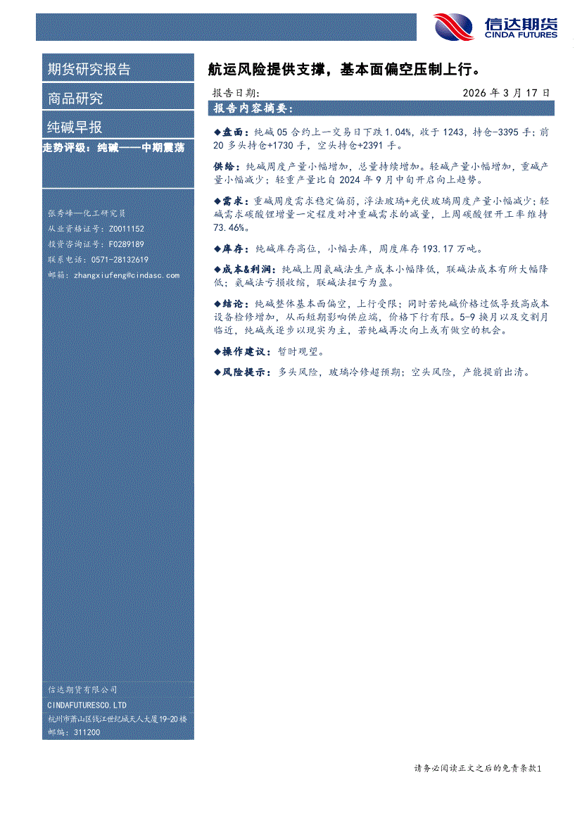 信达期货-纯碱早报:航运风险提供支撑,基本面偏空压制上行-260317