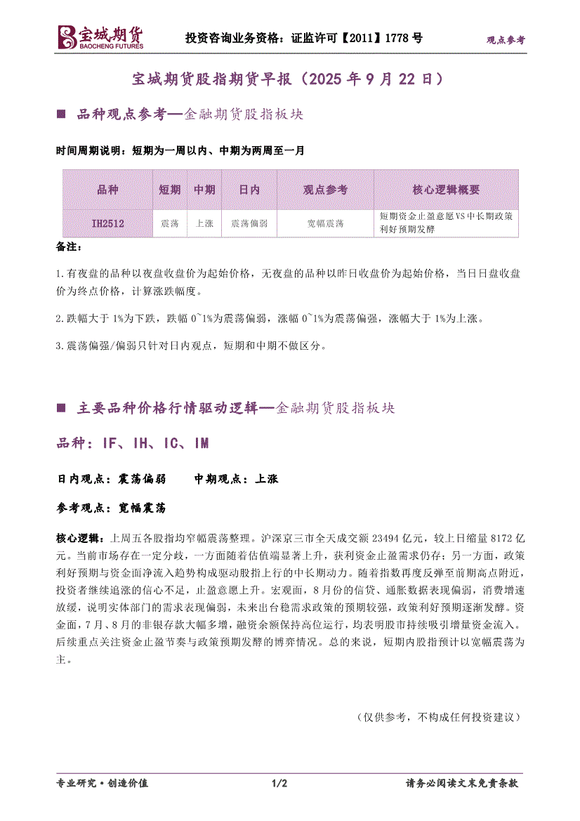 宝城期货-股指衍生品周报:股指震荡整理,期权隐波有所上升-250921