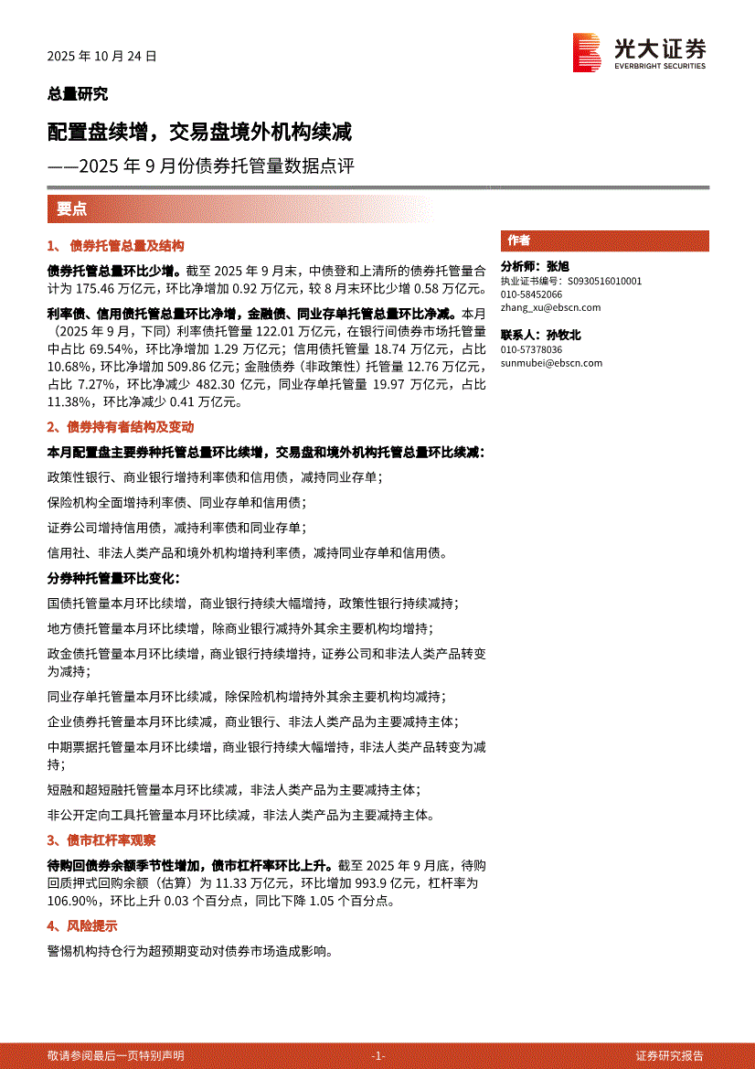 光大证券-2025年9月份债券托管量数据点评:配置盘续增,交易盘境外机构续减-251024