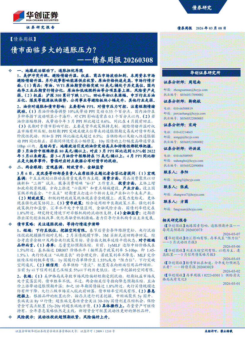 华创证券-债券周报:债市面临多大的通胀压力?-260308