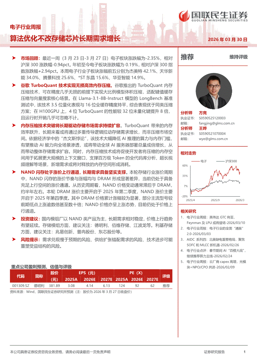电子行业:国联民生证券-电子行业周报:算法优化不改存储芯片长期需求增长-260330