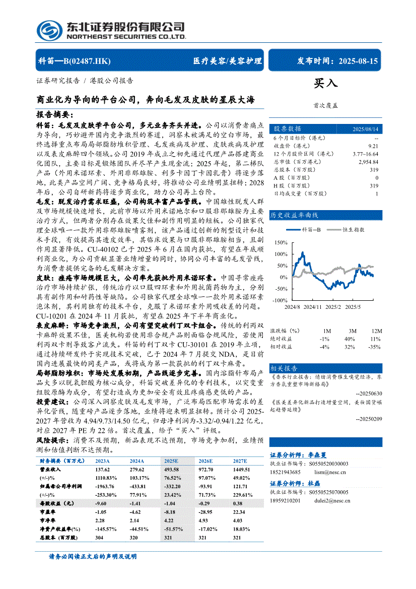 科笛~B:东北证券-科笛~B-2487.HK-商业化为导向的平台公司,奔向毛发及皮肤的星辰大海-250815