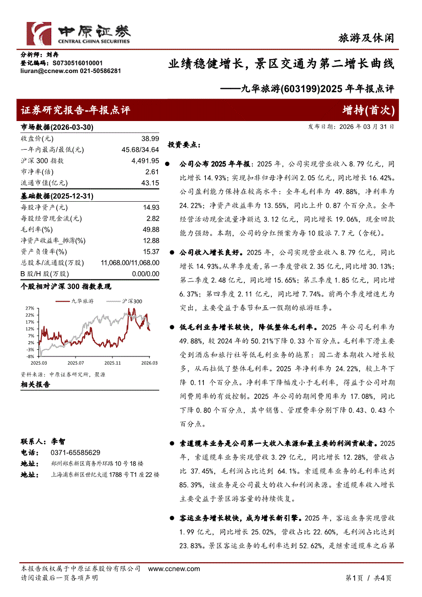 九华旅游:中原证券-九华旅游-603199-2025年年报点评:业绩稳健增长,景区交通为第二增长曲线-260331