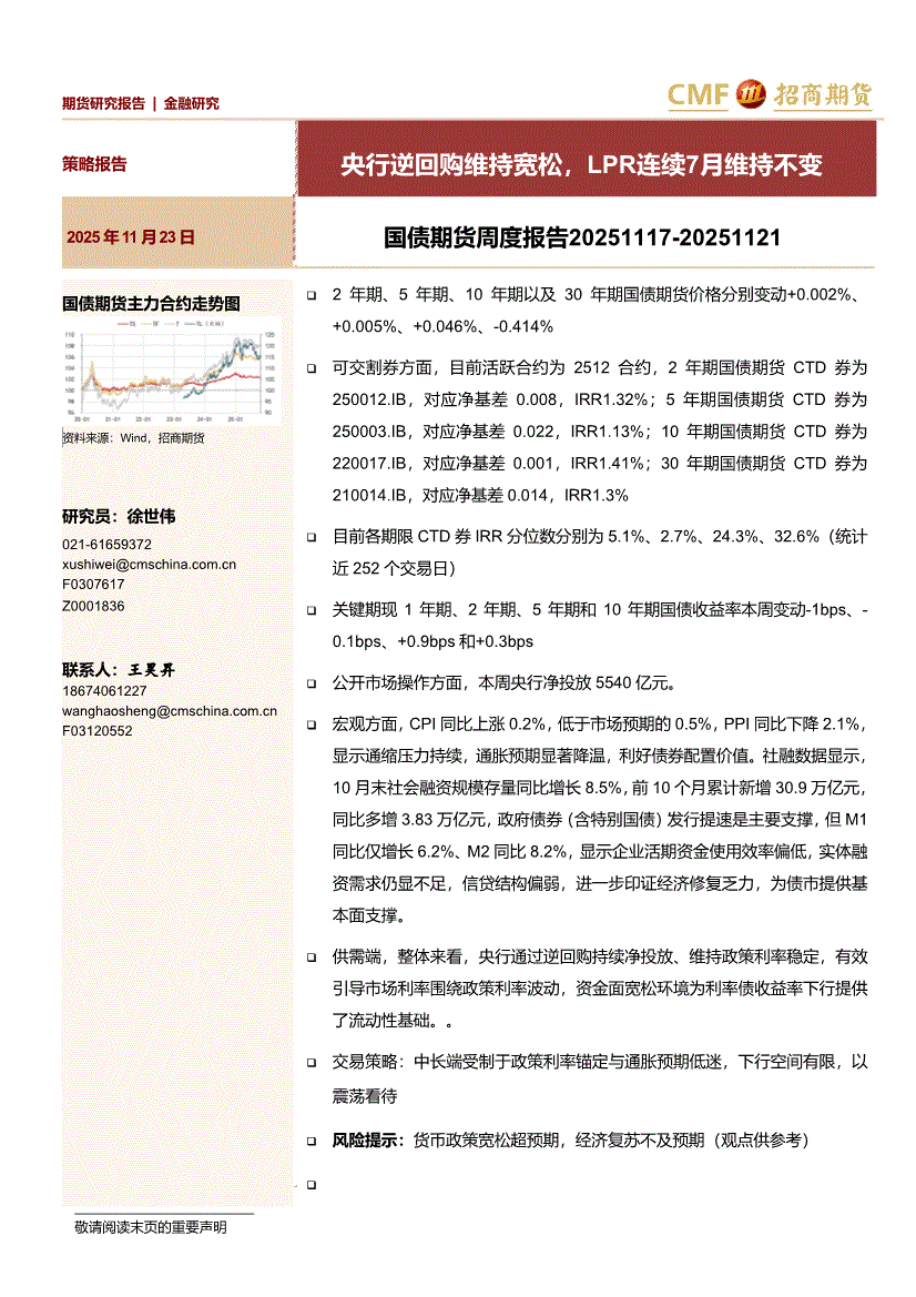 招商期货-国债期货周度报告:央行逆回购维持宽松,LPR连续7月维持不变-251123