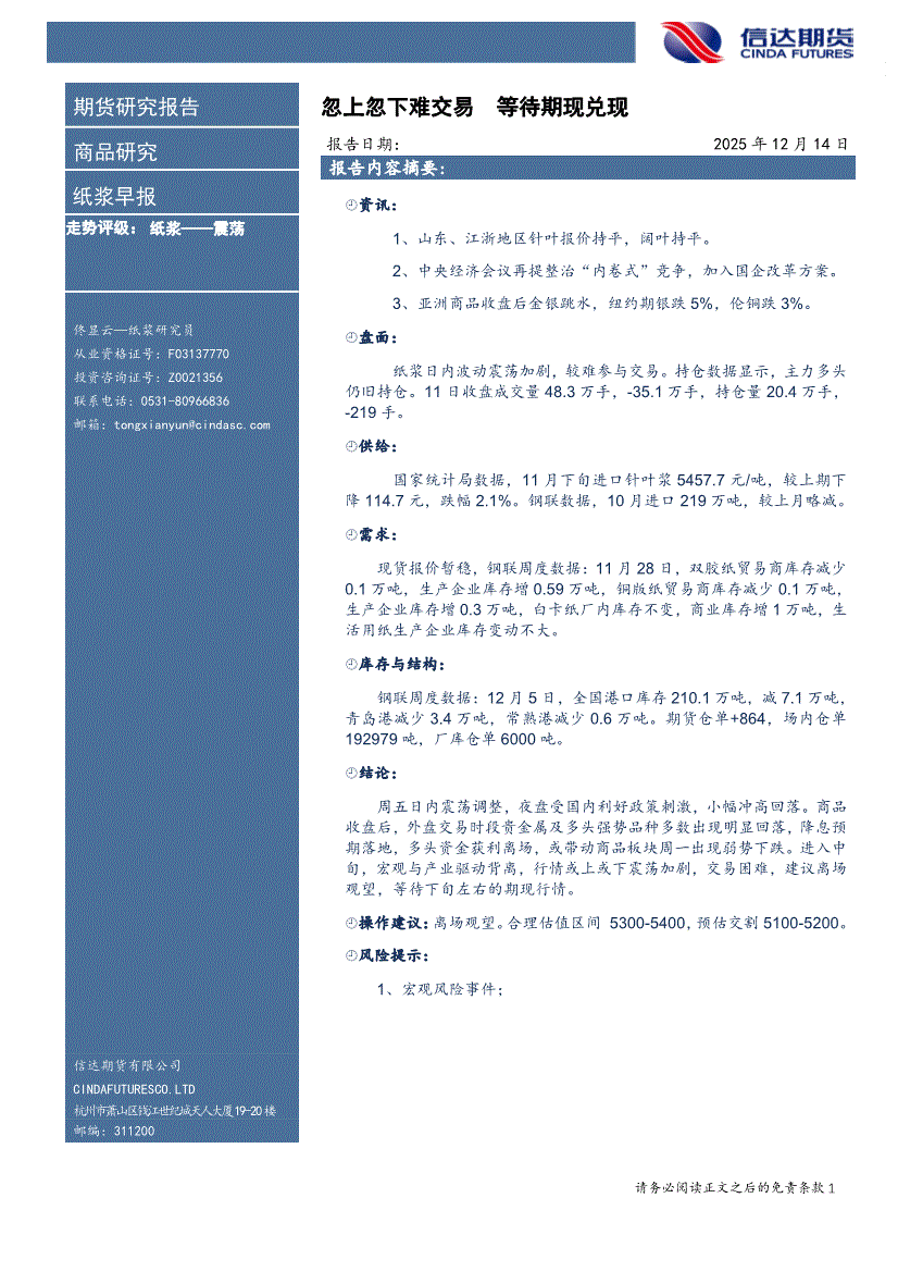 信达期货-纸浆早报:忽上忽下难交易,等待期现兑现-251214
