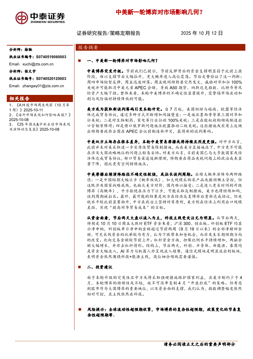 中泰证券-中美新一轮博弈对市场影响几何?-251012