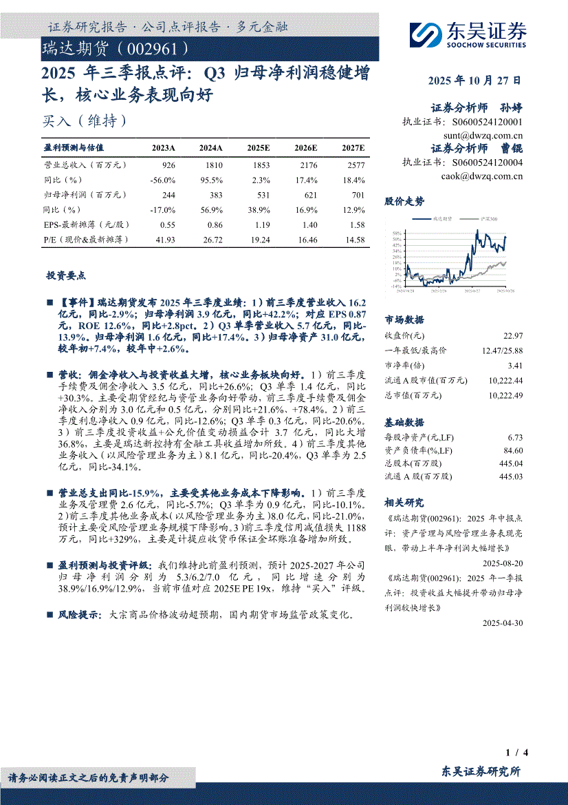 瑞达期货:东吴证券-瑞达期货-002961-2025年三季报点评:Q3归母净利润稳健增长,核心业务表现向好-251027