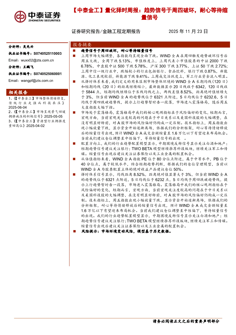 中泰证券-【中泰金工】量化择时周报:趋势信号于周四破坏,耐心等待缩量信号-251123