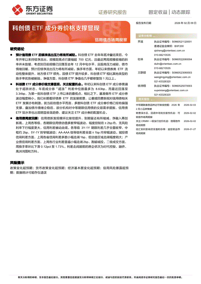 东方证券-信用债市场周观察:科创债ETF成分券价格支撑显现-260209