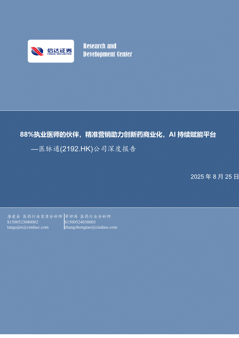 医脉通:信达证券-医脉通-2192.HK-公司深度报告:88%执业医师的伙伴,精准营销助力创新药商业化,AI持续赋能平台-250825