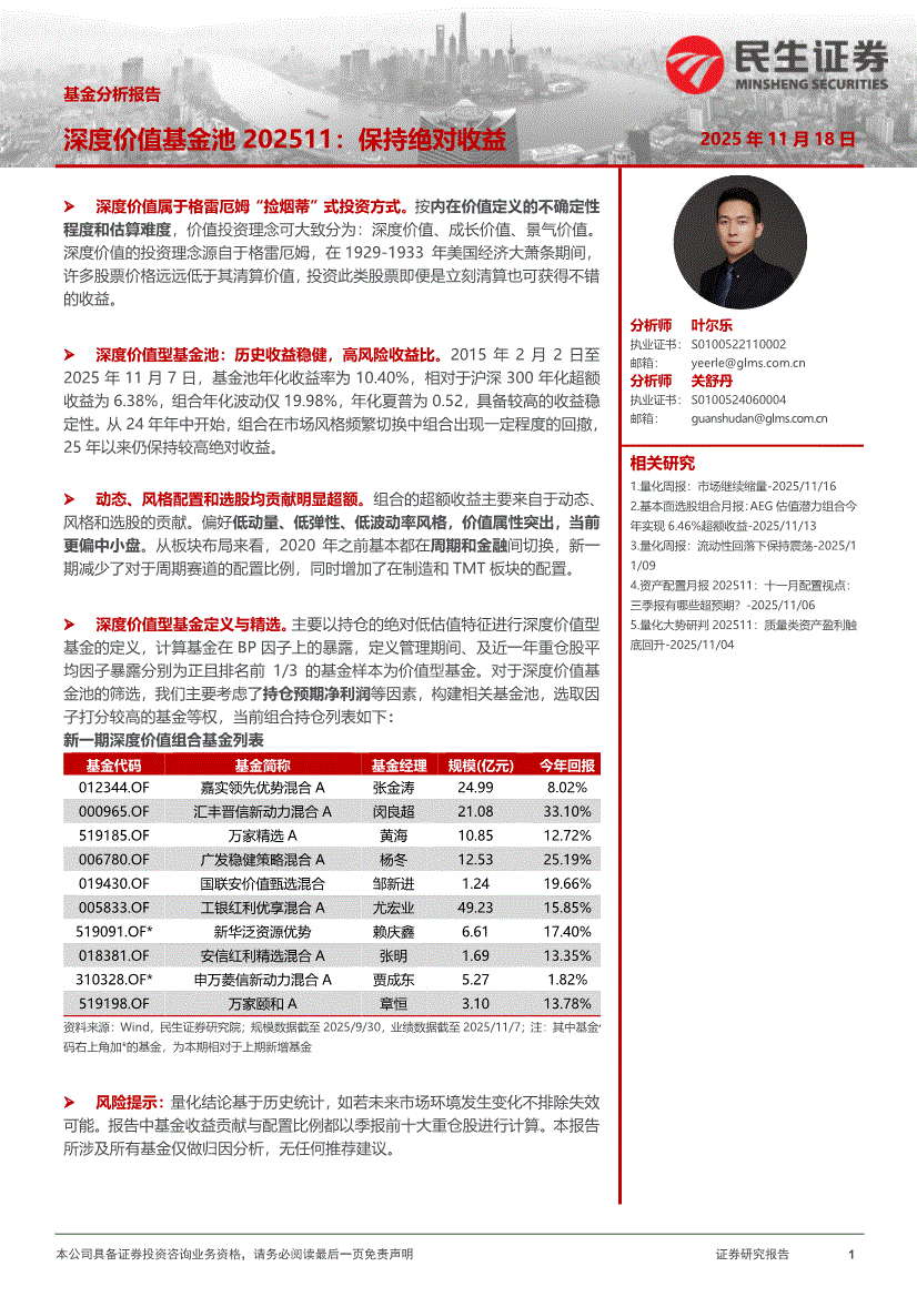 民生证券-基金分析报告:深度价值基金池202511,保持绝对收益-251118