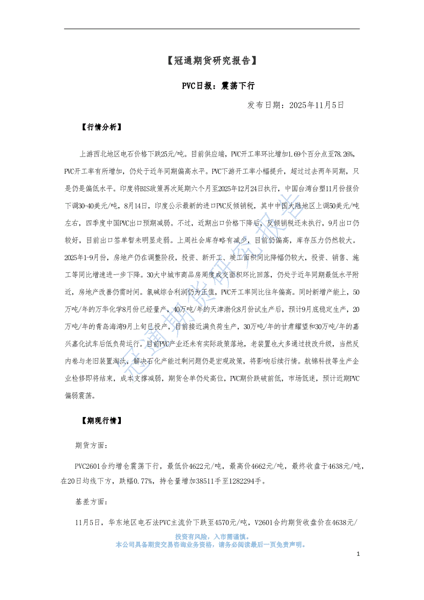 冠通期货-PVC日报:震荡下行-251105