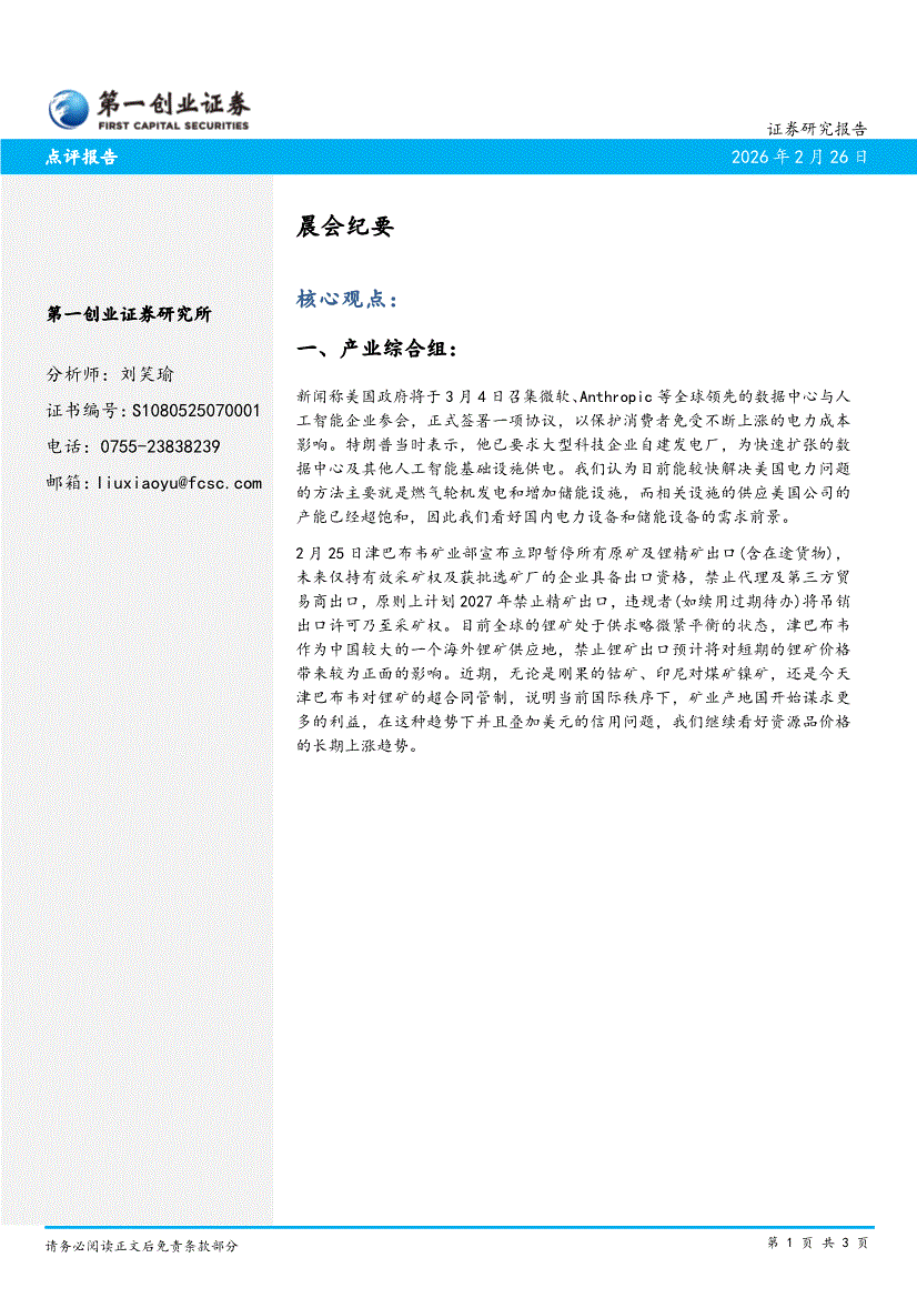 第一创业-晨会纪要-260226
