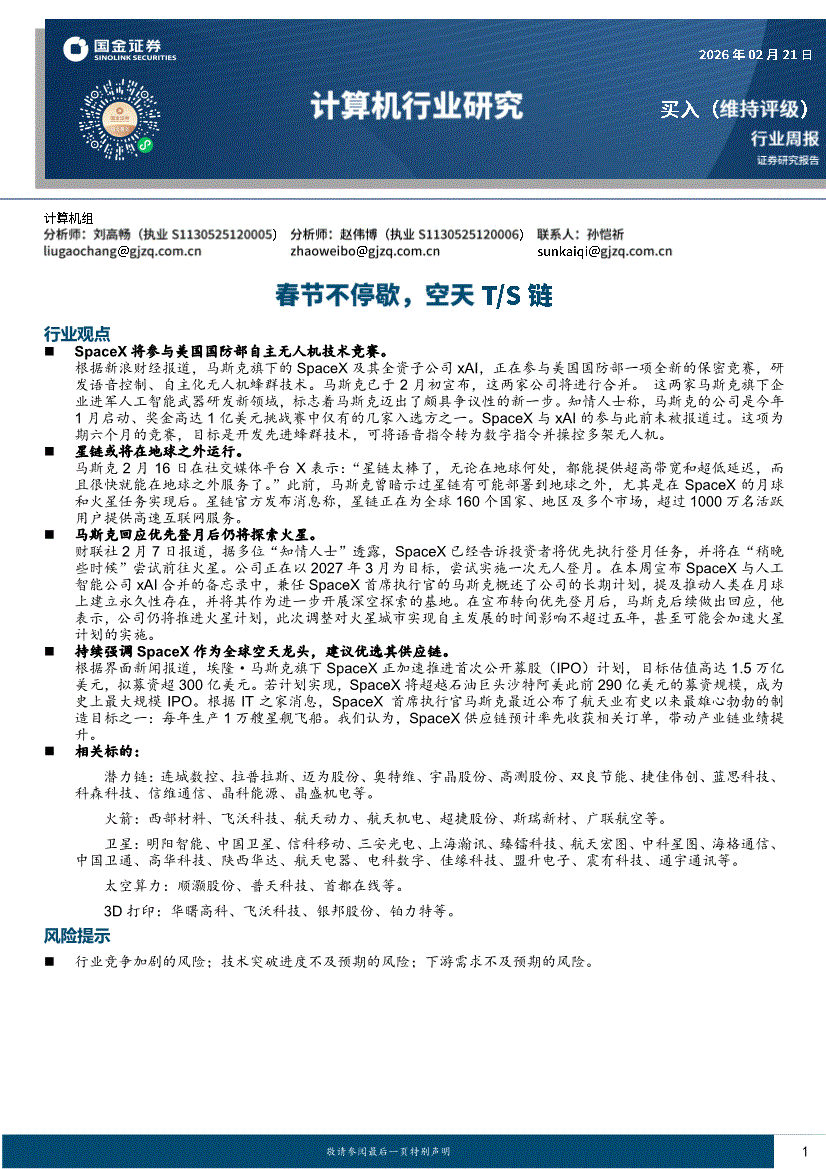 计算机行业:国金证券-计算机行业周报:春节不停歇,空天T/S链-260221