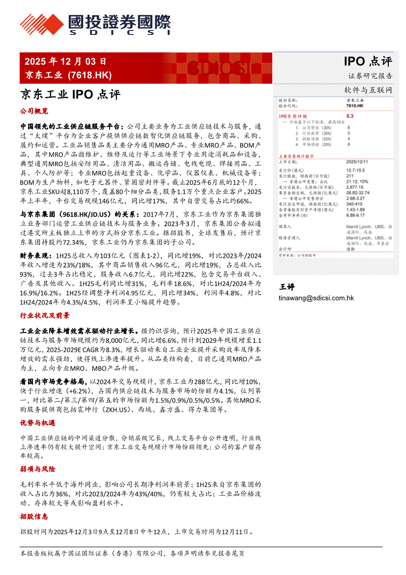 国投证券国际-IPO点评:京东工业(7618.HK)-251203