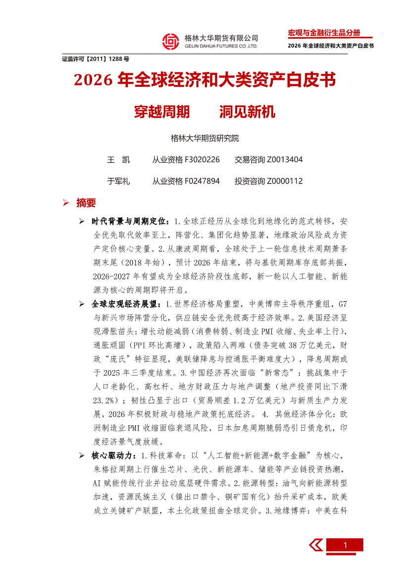 格林大华期货-2026年全球经济和大类资产展望白皮书:穿越周期,洞见新机-260306