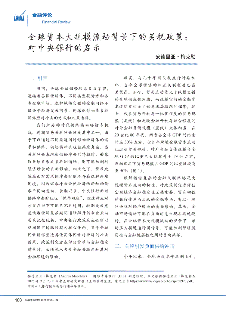 金融市场研究-全球资本大规模流动背景下的关税政策:对中央银行的启示-260122