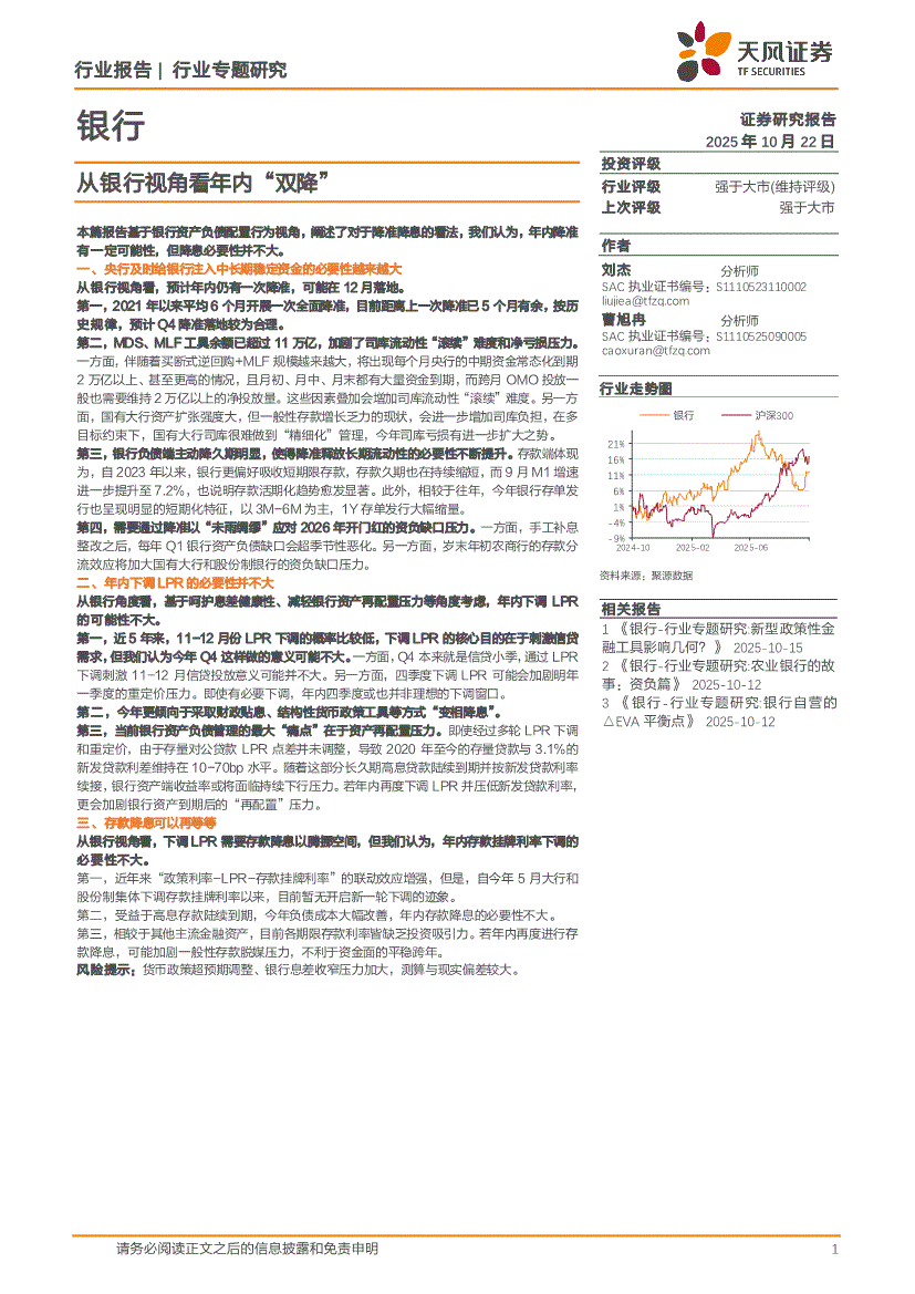 银行业:天风证券-银行业专题研究:从银行视角看年内“双降”-251022