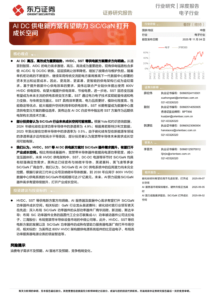 电子行业:东方证券-电子行业深度报告:AI DC供电新方案有望助力SiC/GaN打开成长空间-251104