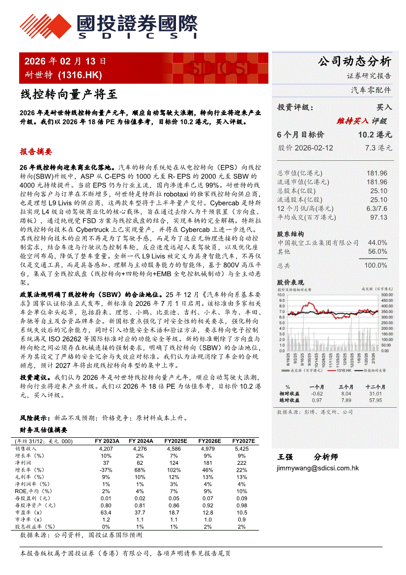 耐世特:国投证券国际-耐世特-1316.HK-线控转向量产将至-260213