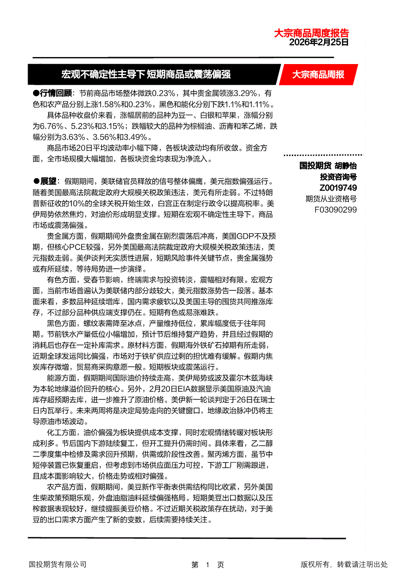 国投期货-大宗商品周报:宏观不确定性主导下,短期商品或震荡偏强-260225