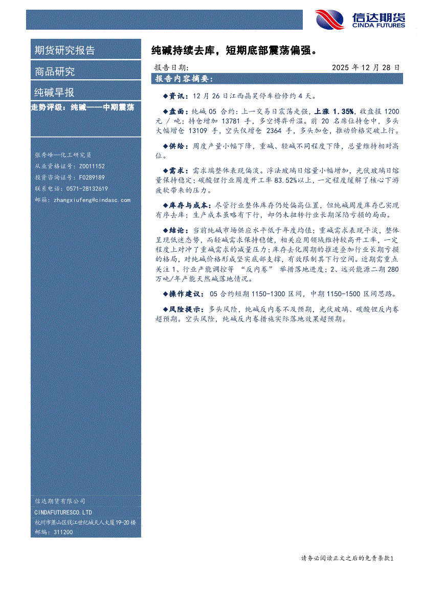信达期货-纯碱早报:纯碱持续去库,短期底部震荡偏强-251228