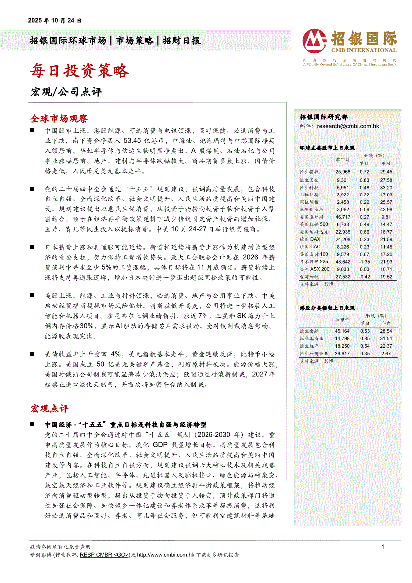 浦银国际-策略观点:从四中全会挖掘“十五五”规划产业投资线索-251023