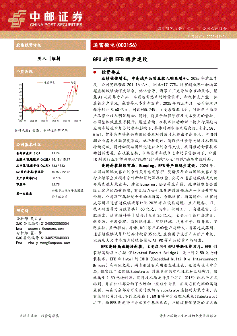 通富微电:中邮证券-通富微电-002156-GPU封装EFB稳步建设-251104