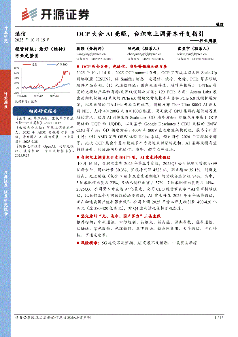 通信行业:开源证券-通信行业周报:OCP大会AI亮眼,台积电上调资本开支指引-251019