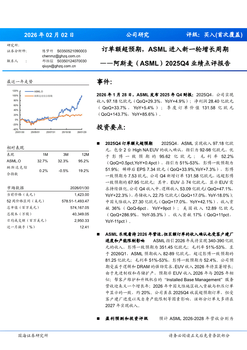 阿斯麦:国海证券-阿斯麦-ASML.US-订单额超预期,ASML进入新一轮增长周期-260202