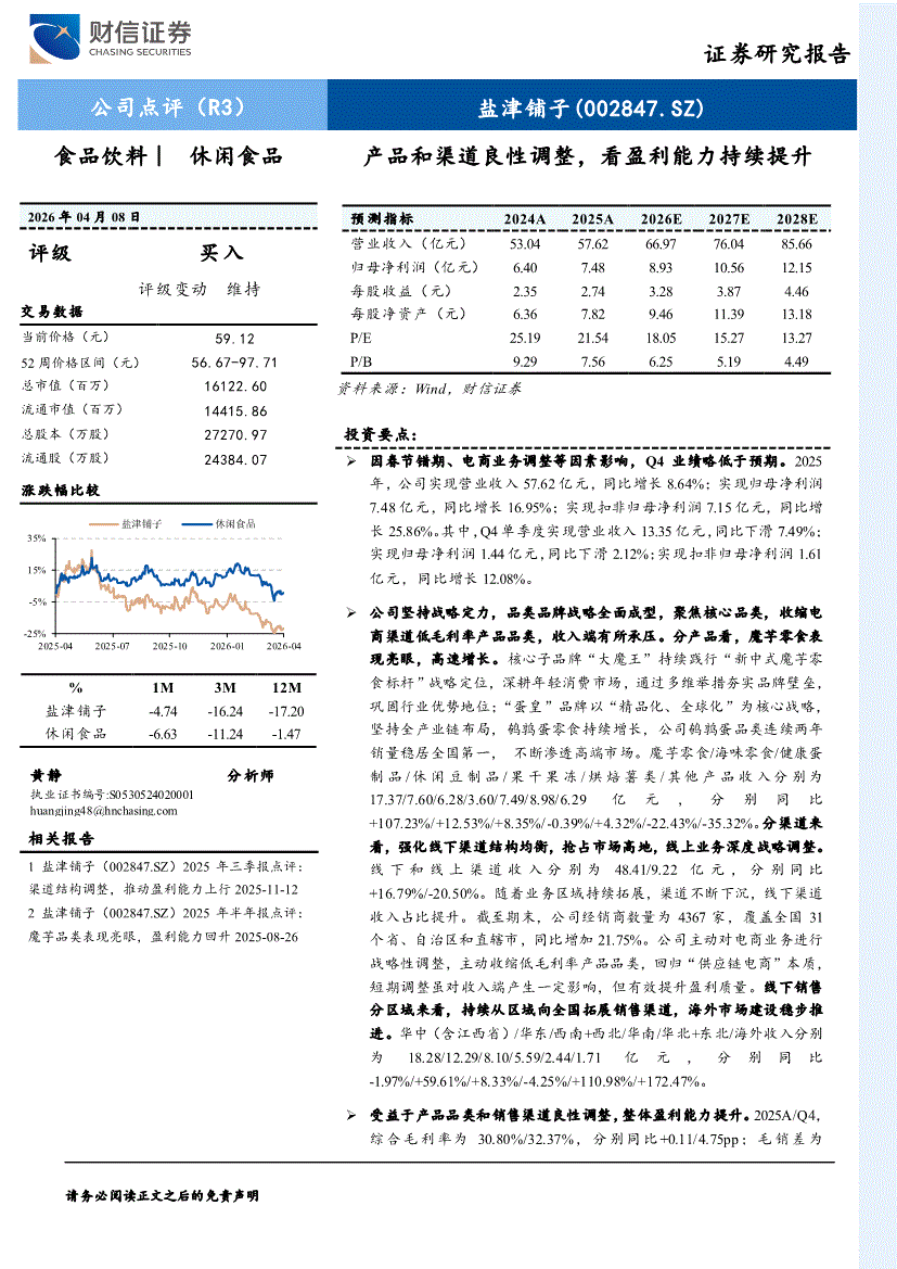 盐津铺子:财信证券-盐津铺子-002847-产品和渠道良性调整,看盈利能力持续提升-260408