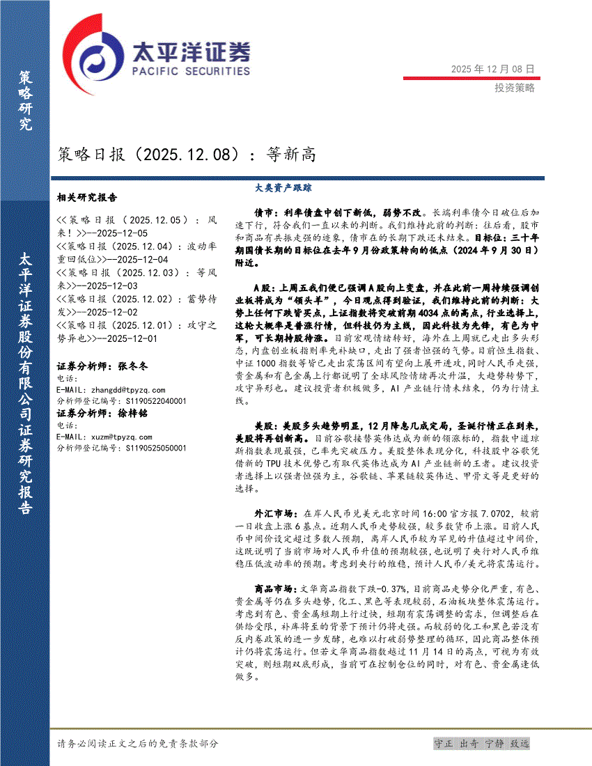 太平洋证券-策略日报:等新高-251208
