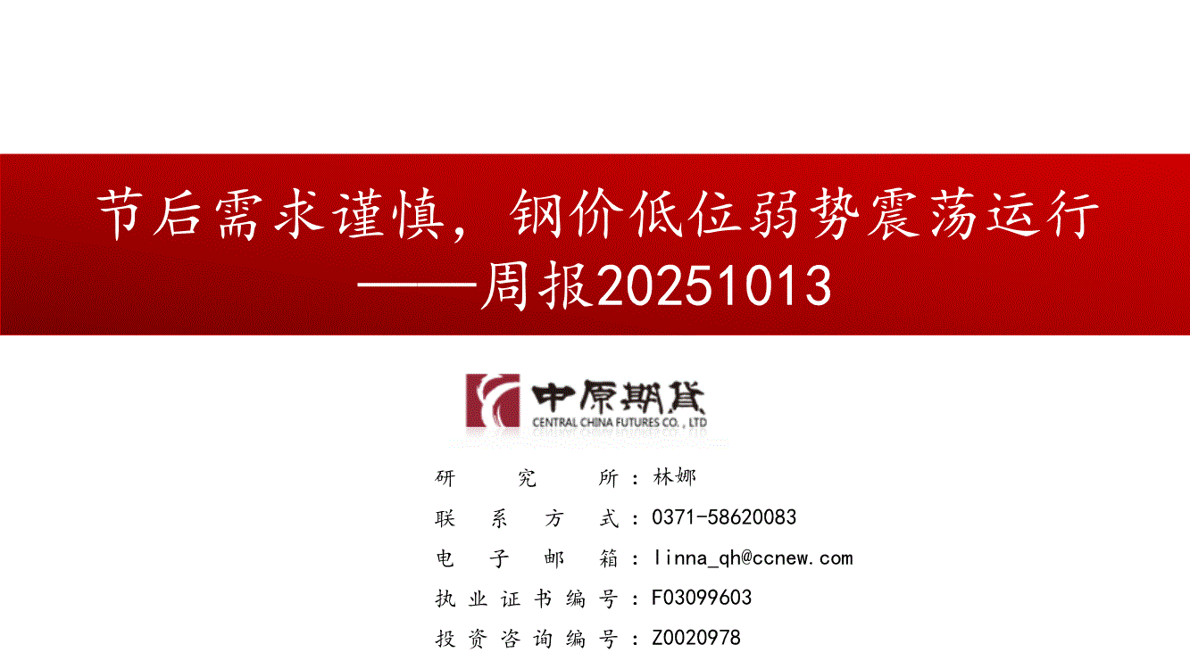 中原期货-周报:节后需求谨慎,钢价低位弱势震荡运行-251013