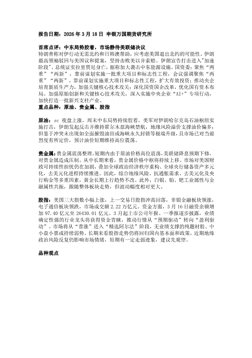 申银万国期货-早间评论-260318