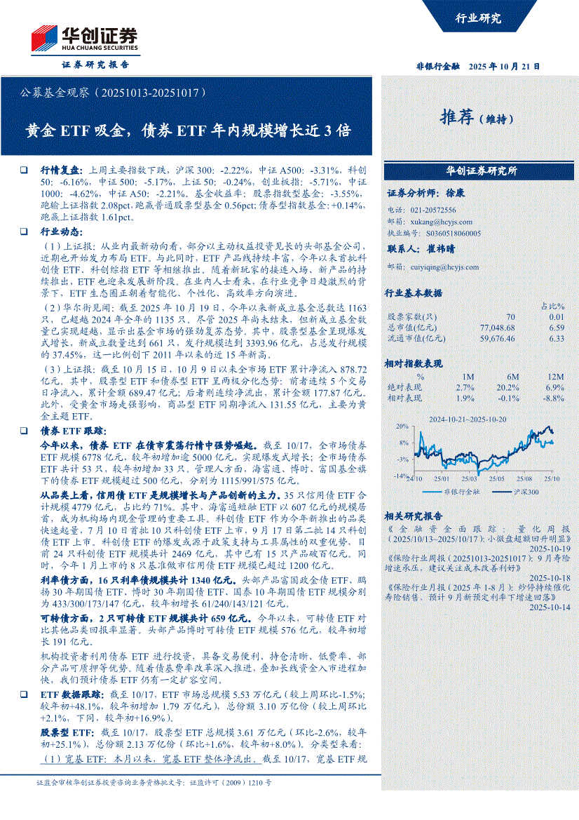 非银行金融行业:华创证券-非银行金融行业公募基金观察:黄金ETF吸金,债券ETF年内规模增长近3倍-251021