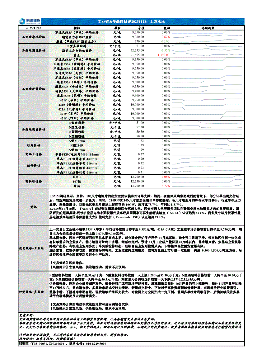 宏源期货-工业硅&多晶硅日评:上方承压-251125