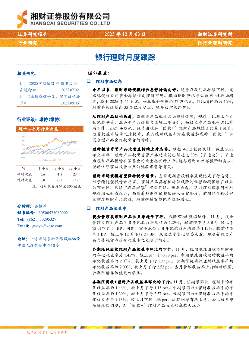 银行业:湘财证券-银行业理财月度跟踪-251203