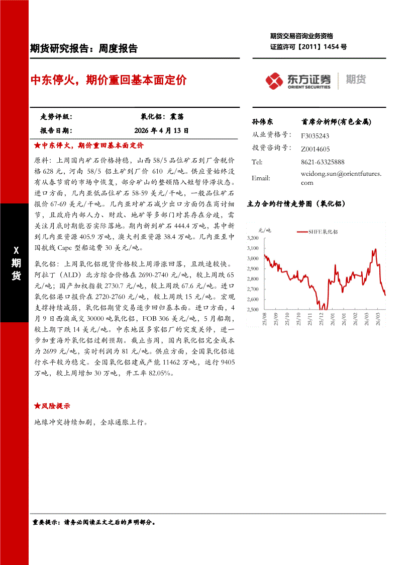 东证期货-氧化铝周度报告:矿石价格下行趋势放缓,氧化铝供给扰动持续-260301