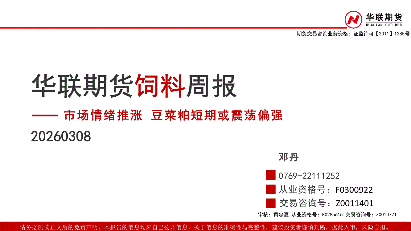 华联期货-饲料周报:市场情绪推涨,豆菜粕短期或震荡偏强-260308