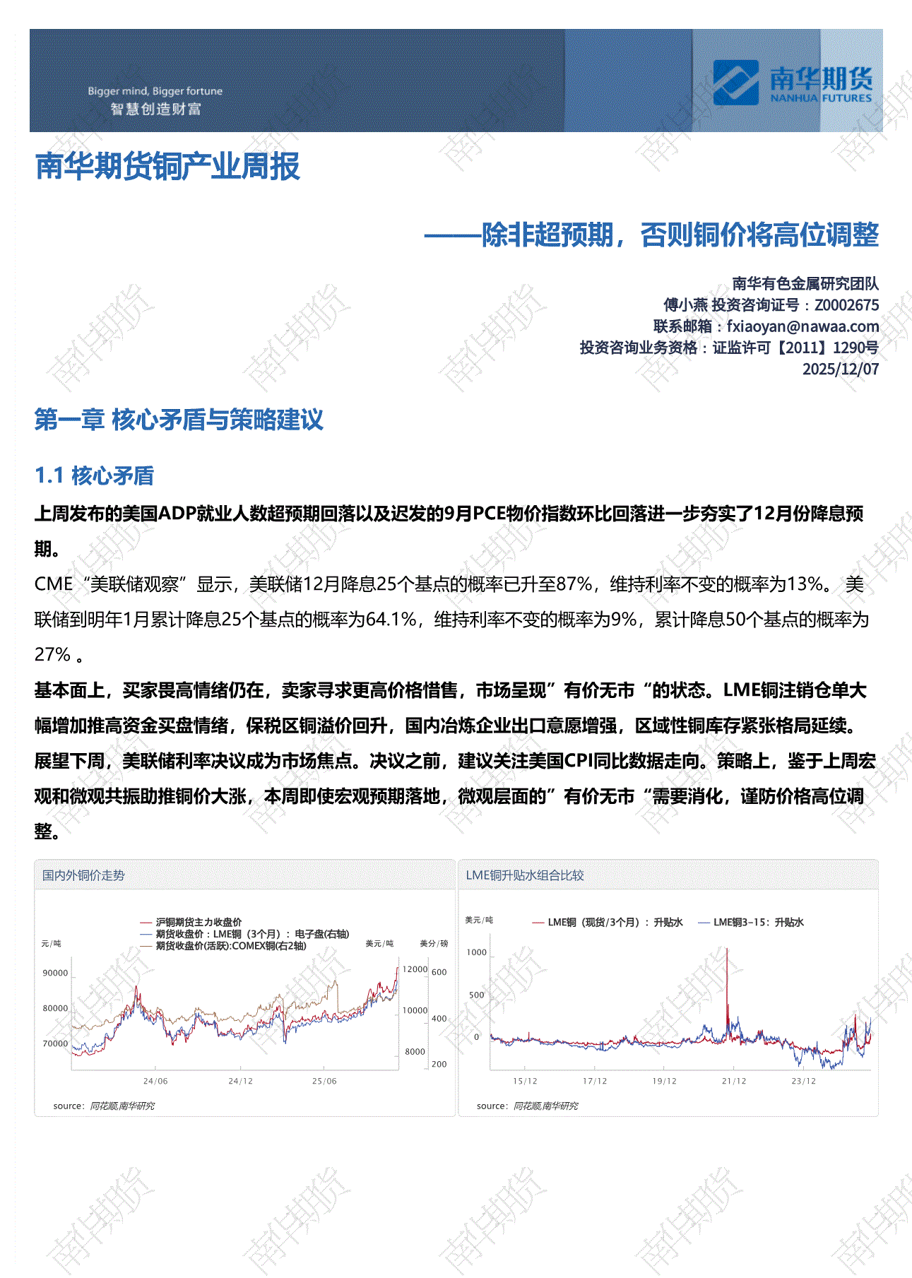 南华期货-铜产业周报:除非超预期,否则铜价将高位调整-251207